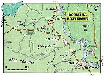 pot: S ceste Črnomelj - Adlešiči zavijete po desetih kilometrih